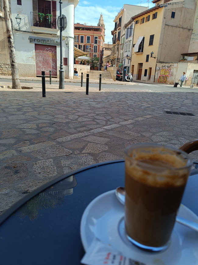 Bar con caràcter, buen café. El único bar en que prefiero estar en la terraza. Un cruce de caminos en pleno call, con vistas al campanario del Socorro